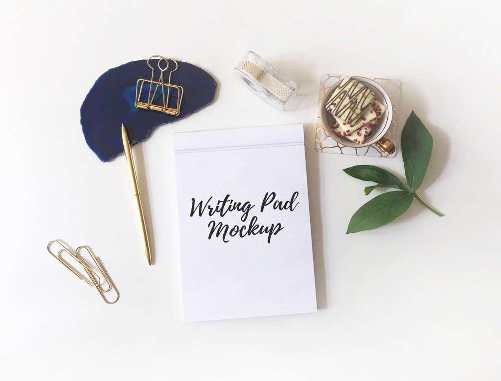 Writing Pad MockupJust MockUps Mockup template PSD of a white writing pad with other flatlay desk items. $33usdHigh Resolution ($1)13usdAdd to cartSize16.3 MBAdd to wishlist New wishlistShareShare on XShare on Facebook Copy linkCopy product URL
